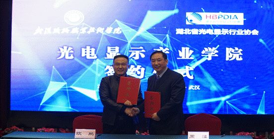 会上,欧鹏讲到湖北省光电显示行业协会是由湖北省从事光电显示相关领域的企业自发成立的协会群团组织。协会的成立在提供信息交流,加强行业自律,促进行业发展维护企业合法权益、激发企业与政府深度合作等方面可发挥重要作用,对促进湖北地区光电显示企业渠道建设以及品牌推广方面都有着巨大的潜力和作用,未来更应该与有行业学科建设的高校加强交流和合作,为整体行业发展做贡献。随后,今年会jinnianhui副校长周慎老师作重要讲话,对协会的合作表示感谢,相信今年会jinnianhui在校企合作的基础上一定会做好相关专业学生的培养工作,做到优势互补、合作共赢。讲话结束后双方进行产业学院签约并颁发企业院长特聘证书,至此,签约仪式圆满成功。