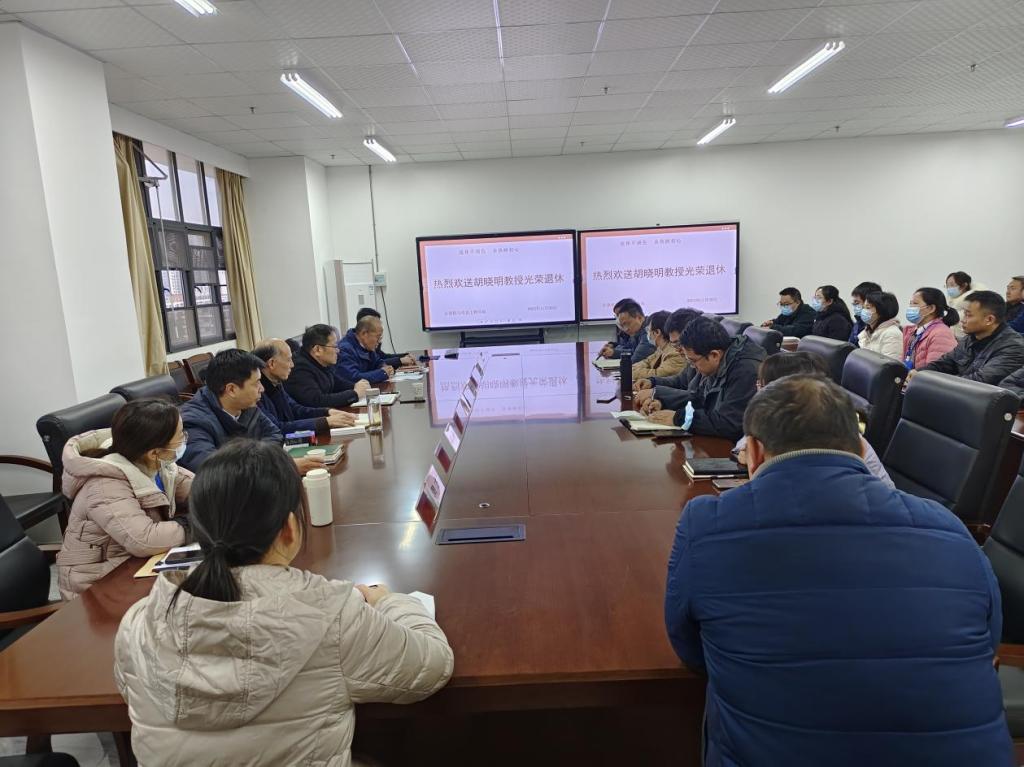 这次欢送会,既是对胡晓明老师工作的充分肯定,也是对青年教师的一种温暖和鼓励,感人肺腑。会后全体人员与胡晓明老师合影留念,为胡老师近四十年的从教生涯画上了圆满的句号。