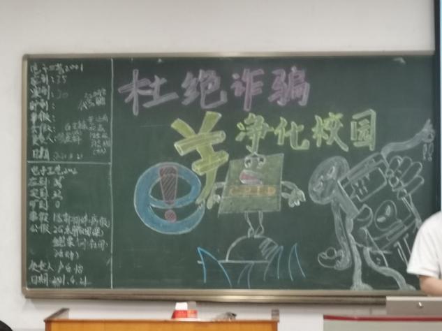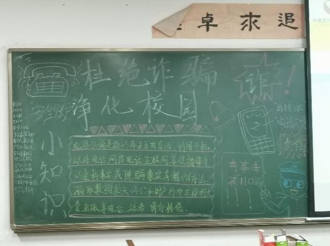 本次活动通过画板报、讲述ppt、播放视频等方式让学生了解校园诈骗的危害。每个班级都自己创作了黑板报,形象生动地展示了校园诈骗的表现,防诈骗的方法。视频和PPT主要播放了近期藏龙岛片区校园诈骗的真实案例,让学生认识了层出不穷的骗术。班级主持人带领学生积极讨论“怎么才能防止被骗”,“如果我被骗了怎么办”等话题。学生们积极发言,收获良多。