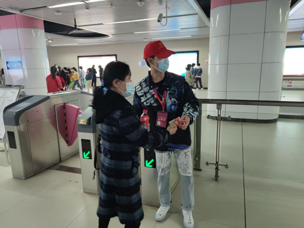 志愿者们在模拟站台集合,随后志愿者们在校负责人的带领下来到了地铁站,继校负责人签完到后,志愿服务部学生干部事给志愿者分配了各自的岗位,并给志愿者们认真的讲解了本次活动的具体要求。活动期间,每个志愿者都秉着为他人服务的精神站在自己的岗位,遇到有问题的旅客,他们会耐心的为每个旅客解答问题,直至问题解决。志愿者们一直没有松懈,坚持不懈的站在自己的岗位履行自己身为志愿者的职责,直至此次志愿活动结束。
