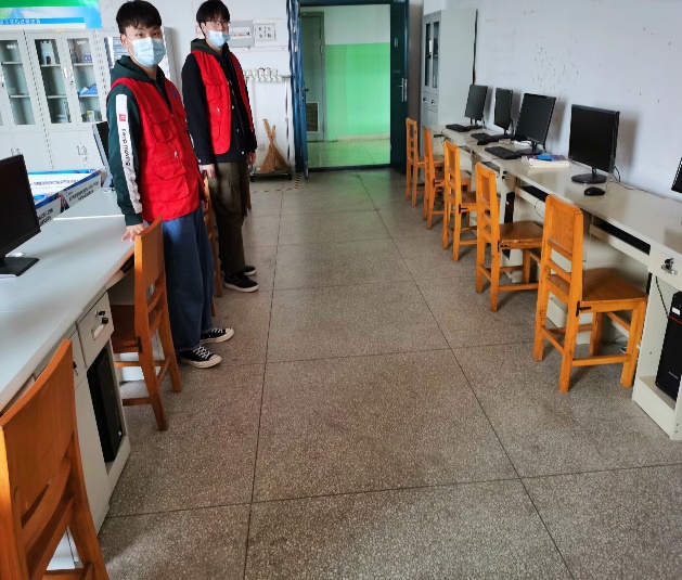志愿者们在图书馆门口集合,志愿服务部学生干部事先给各小组分配了清扫任务,活动开始后,他们有序进入打扫现场。志愿者充满了热情,打扫时充满了干劲,把实训所需的各种仪器摆放整齐,不放过任何一个角落。他们认真又有耐心,为同学们创造出了一个干净整洁的学习环境。
