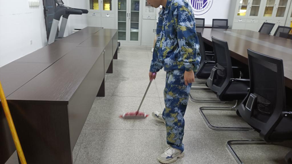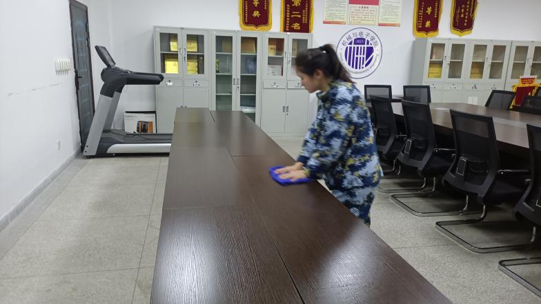 活动开始前,同学们在三栋七楼楼梯口集合,部门干事清点人数,分配各自打扫任务,随后一起前往。活动开始后,他们有序进入打扫现场。会议室内,同学们将桌面擦拭得焕然一新,并将椅子一条线摆放整齐,地面上不放过任何一片垃圾,拖得一尘不染,在打扫过程中,同学们辛勤劳动,配合默契,分工合作,干劲十足,不放过任何一个角落。打扫完后的会议室,干净整洁,为老师同学们营造了一个舒适的环境。