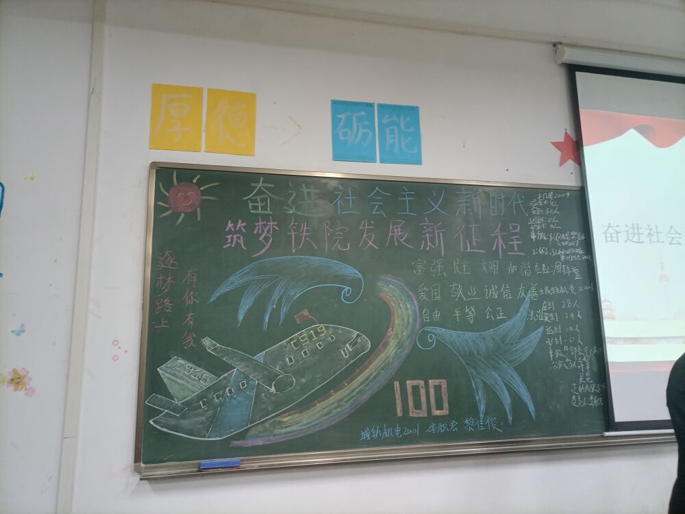 本次时政城轨机电1902,城轨机电2001班表现优良。主讲人巧妙的结合PPT与视频 ,用视听结合的方式使同学们进入时政的氛围。从习主席的谈话入手传播习近平新时代中国特色社会主义思想,并以此来弘扬铁院优秀活动与个人榜样。