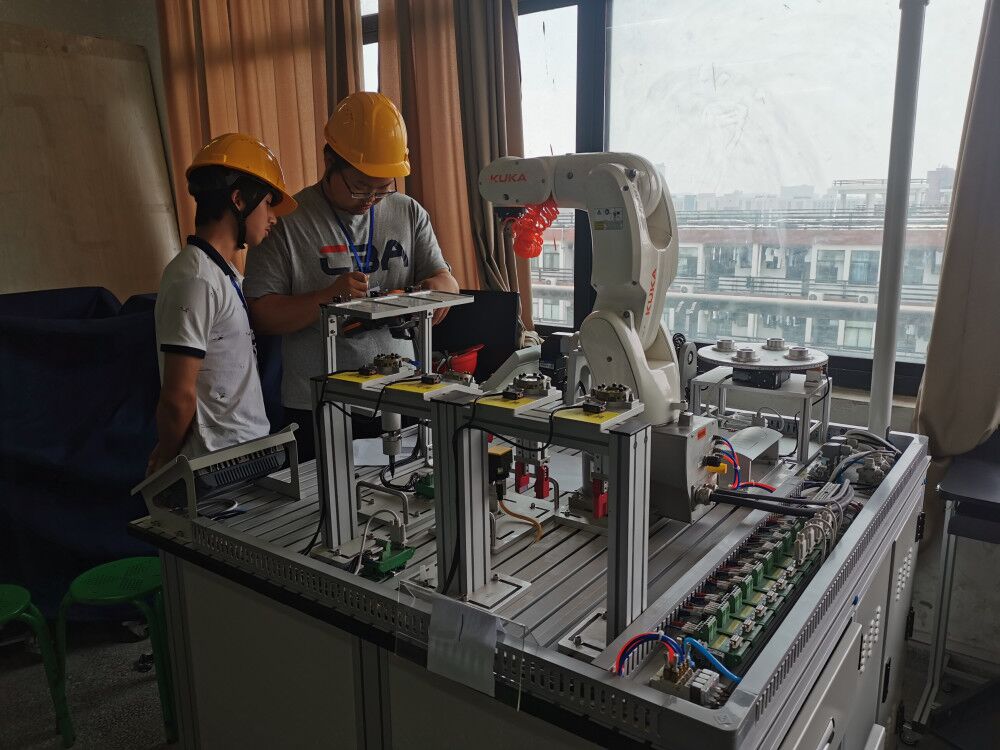 开幕式结束后立即开始了正式比赛,60支计算机网络与信息安全参赛队和56支工业机器人参赛队参赛。计算机网络与信息安全比赛队在赛场提供的计算机、工具耗材及网络虚拟环境中完成比赛任务。包含网络组建、服务器配置及应用、网络设备安全配置与防护、系统安全管理与运维是四个模块的工作内容。机器人应用技术参赛队根据比赛题目要求使用亚龙库卡机器手示教器进行编程,并完成相应轨迹绘制。评委根据完成实际情况,结合评分标准给出实操比赛成绩。