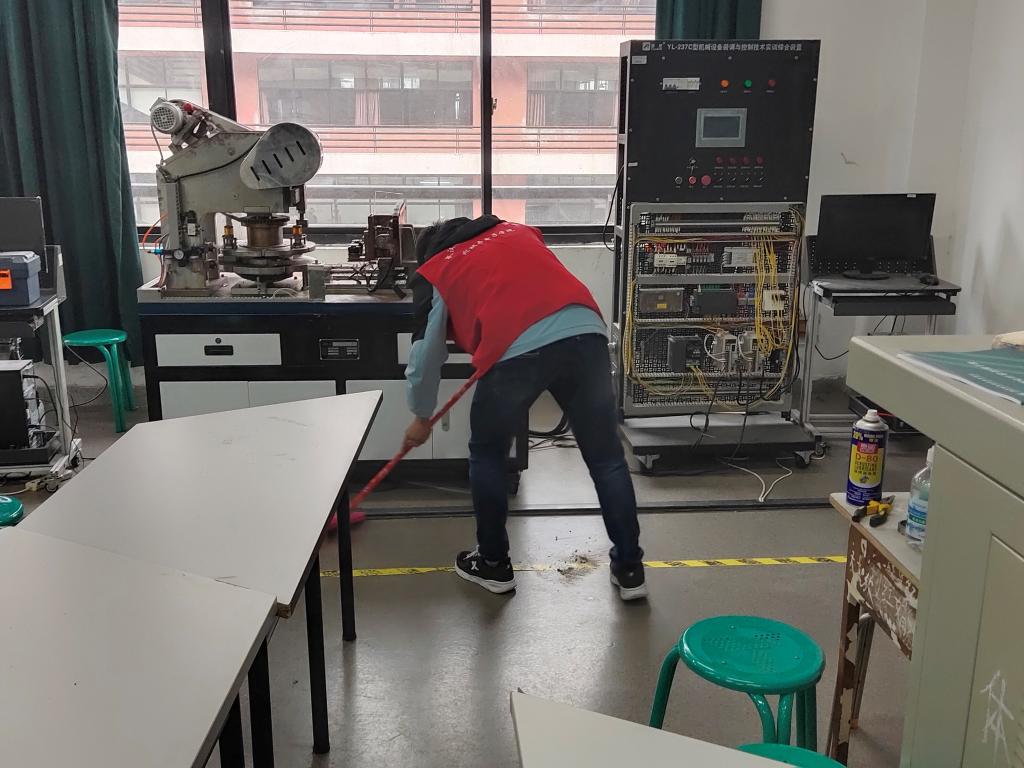 10月14日下午,机械与电子学院组织36名志愿者对三栋七层老师办公室和三栋教学楼六层实训室以及二栋教学楼三层七层实训室进行卫生清扫,这是机电学院劳动教育的系列活动,同时也是21级新同学首次志愿者活动。