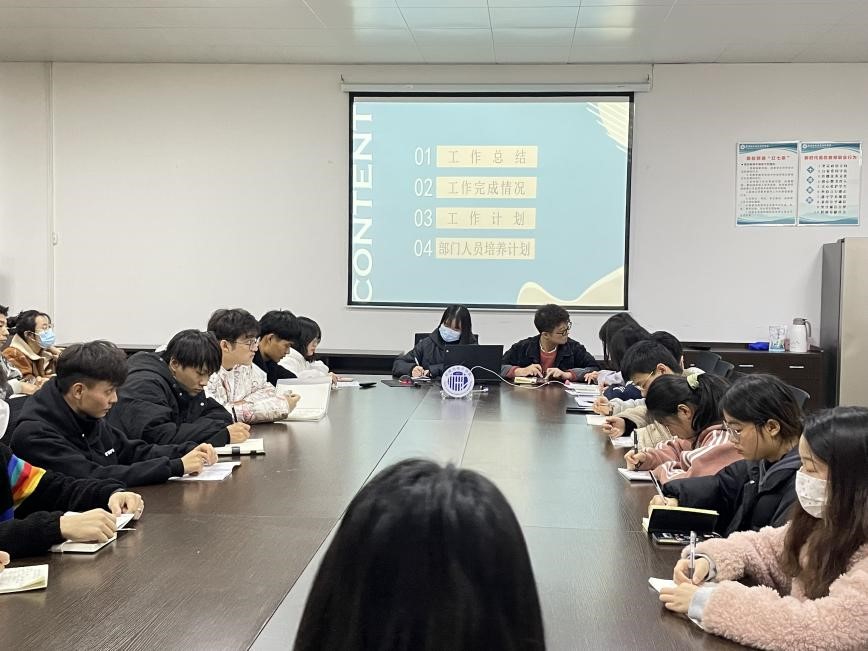 最后,熊珂老师对本次会议进行了总结,就各部门遇到的问题提出了解决方案,希望各部门认真工作,注重沟通交流合作。同时强调,在培养新生方面要注重基础培养,切勿急于求成,学生骨干也要做好带头作用,在自身的建设情况下,也要为新生做好榜样。