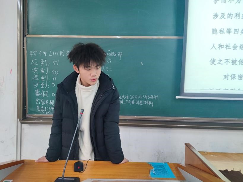 保守国家秘密是各事业发展至关重要的基础保障作用,关系到国家和个人利益,保密是我国公民应尽的义务。活动过程中,班级领读人带领同学们一起阅读学习高校师生保密知识读本中的知识条目和典型案例。学生们讨论了在日常生活中也要注意保密,在使用信息设备时,在网络活动中以及宣传报道和对外交流中都要注意自己的言行举止。面对金钱等诱惑,严格要求自己,抵制诱惑,提高自我保护意识。