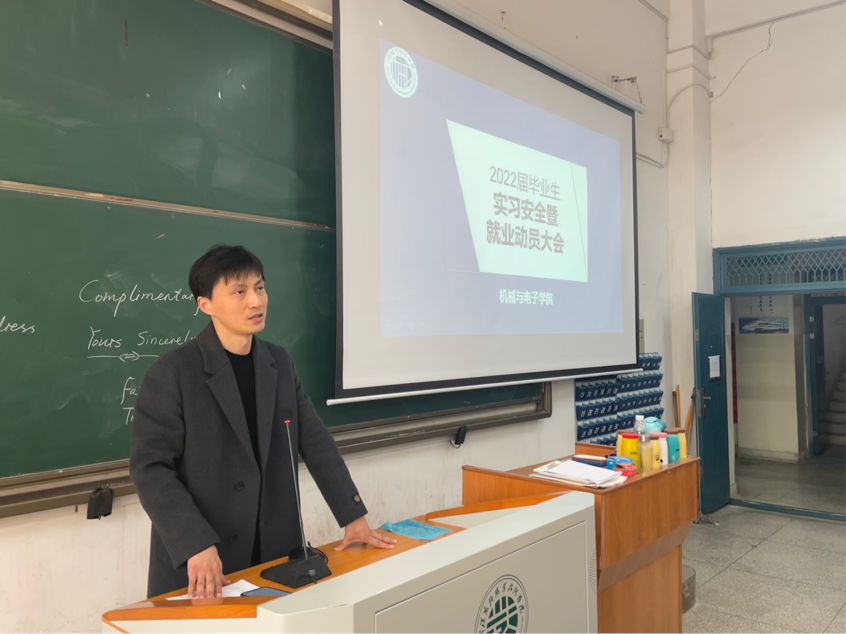 12月21日中午,机械与电子学院在厚德楼109、110和111教室组织开展了2022届毕业生实习安全暨就业动员大会。本次活动由机电学院王峰院长指导,各教研室主任主持了此次会议,年级辅导员、专任教师代表和所有2022届在校生参会。