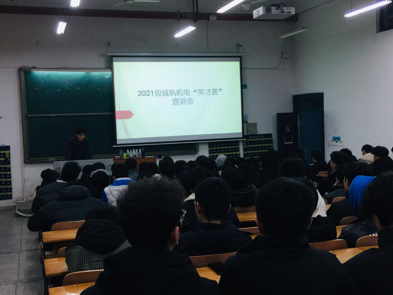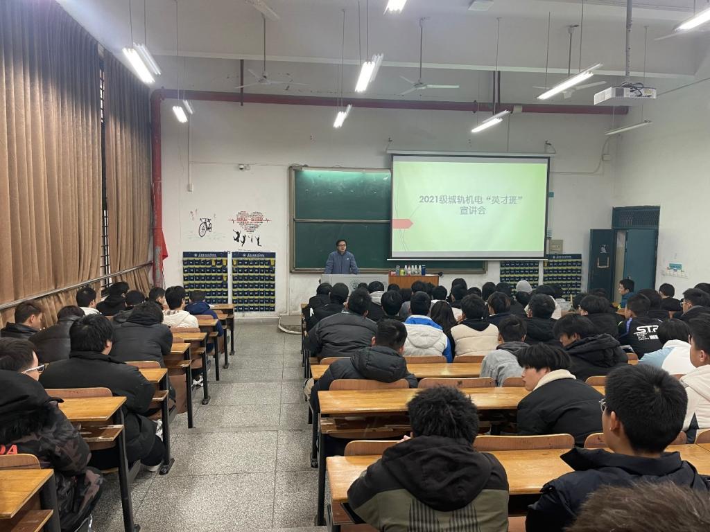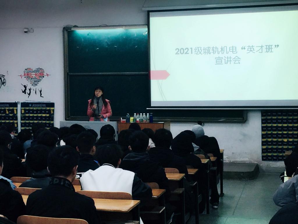 12月24日下午,机械与电子学院城市轨道交通机电技术专业在2#111阶梯教室召开2021级英才班宣讲会,机电学院副院长张辉、城轨机电教研室主任刘玲、专业带头人夏彬以及2021级城轨机电105名学生参加会议。