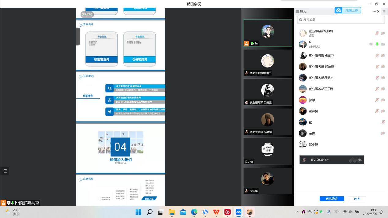 6月20日晚,浙江中财管道科技股份有限公司为招揽技术型人才,于线上开展了面试宣讲活动,参与此次活动的有企业负责人以及机械与电子学院有就业意向的同学们。