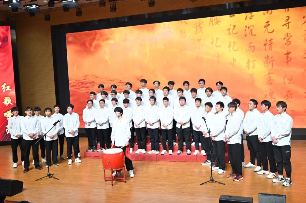 一首红歌,记录一段峥嵘岁月;一首红歌,象征一面光辉旗帜。伴随着主持人热情洋溢的开场,本次红歌比赛在全场观众的欢呼和掌声中拉开了帷幕。《学习雷锋好榜样》《精忠报国》《没有共产党就没有新中国》《我们走在大路上》等一首首耳熟能详的红色经典歌曲,向观众们传递着奋发图强的意志力量,抒发赤胆忠心的爱国情怀。活动高潮迭起,精彩纷呈,歌声催人奋进,激励着同学们在今后的学习生活中砥砺前行,笃行不怠。回忆烽火历程,感受岁月如诗;同绘山河锦绣,唱响祖国颂歌。