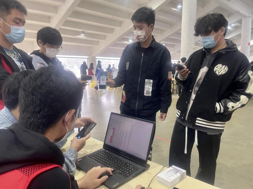 根据学院学生专业特点,计算机学院充分利用信息化平台应用与数字技术,助推平安社区建设。为积极落实学校疫情防控政策,做好核酸检测系列工作,学院为学生制作检测快速登记的“机电码”,实现检测快捷、过程便利、核对无误的核酸检测程序。