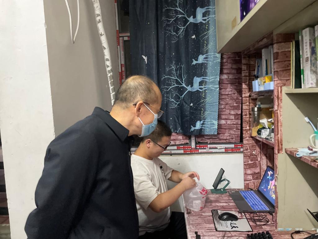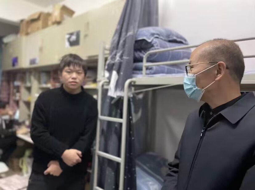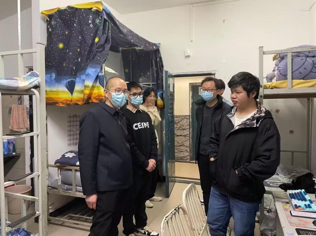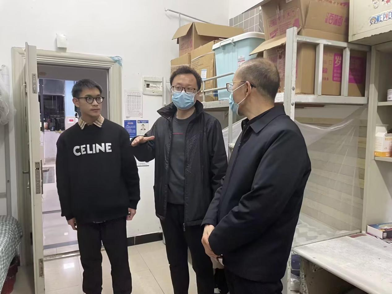 在深入走访学生寝室的过程中,学生们都十分欣喜热情地接待老师。肖院长与毕业生进行深入交流与沟通,指导毕业生就业工作,并代表学院向毕业生就业表达深切关心。肖院长还叮嘱同学们要遵守学校疫情防控要求,谨防网络诈骗,询问并解决了同学们在日常生活中问题与学习方面的困扰。