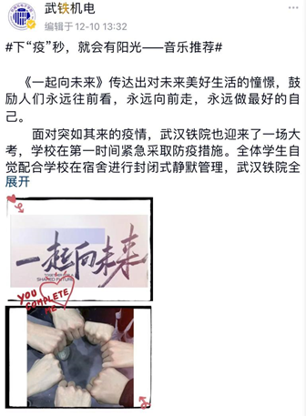 为丰富疫情下同学们的生活,积极传播正能量,12月2日,今年会特此开展“下‘疫’秒,就会有阳光”活动,学院全体学生参与。