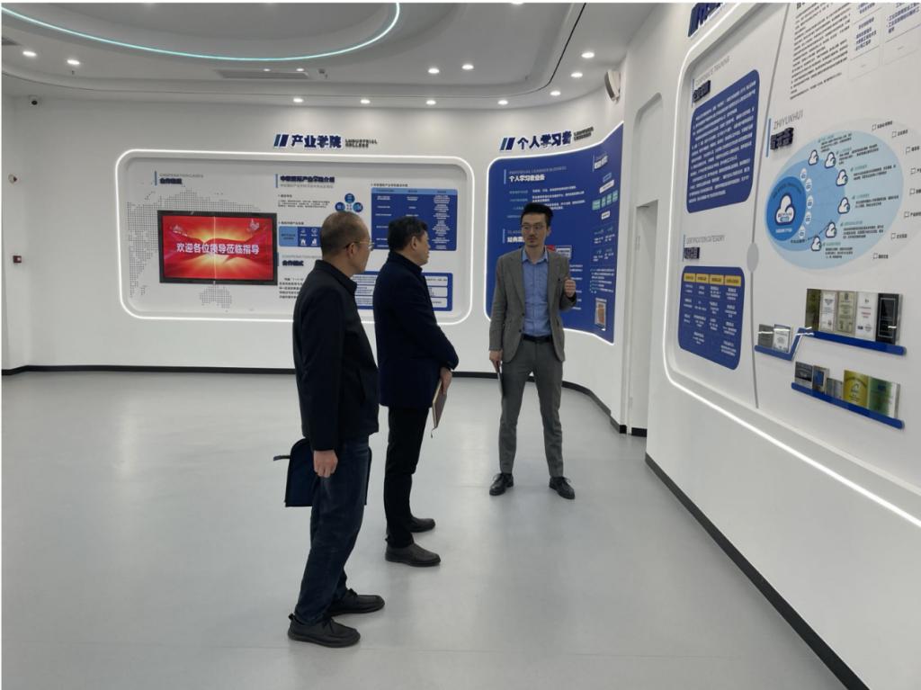 在中软国际武汉(江夏)数字经济创新中心,白书记一行参观了中心的数字化展厅、软件开发工作室、鸿蒙开发实验室、网络工程实训室等实践教学区域。该中心以数字化人才培养为核心,聚焦全行业数字化、网络化、智能化升级,充分发挥中软国际与生态合作企业在人工智能、大数据、云计算、物联网等新兴技术方向的集群优势,奠定了在产教深度融合之中工程教育实践、创新创业教育、劳动教育的有机融合。
