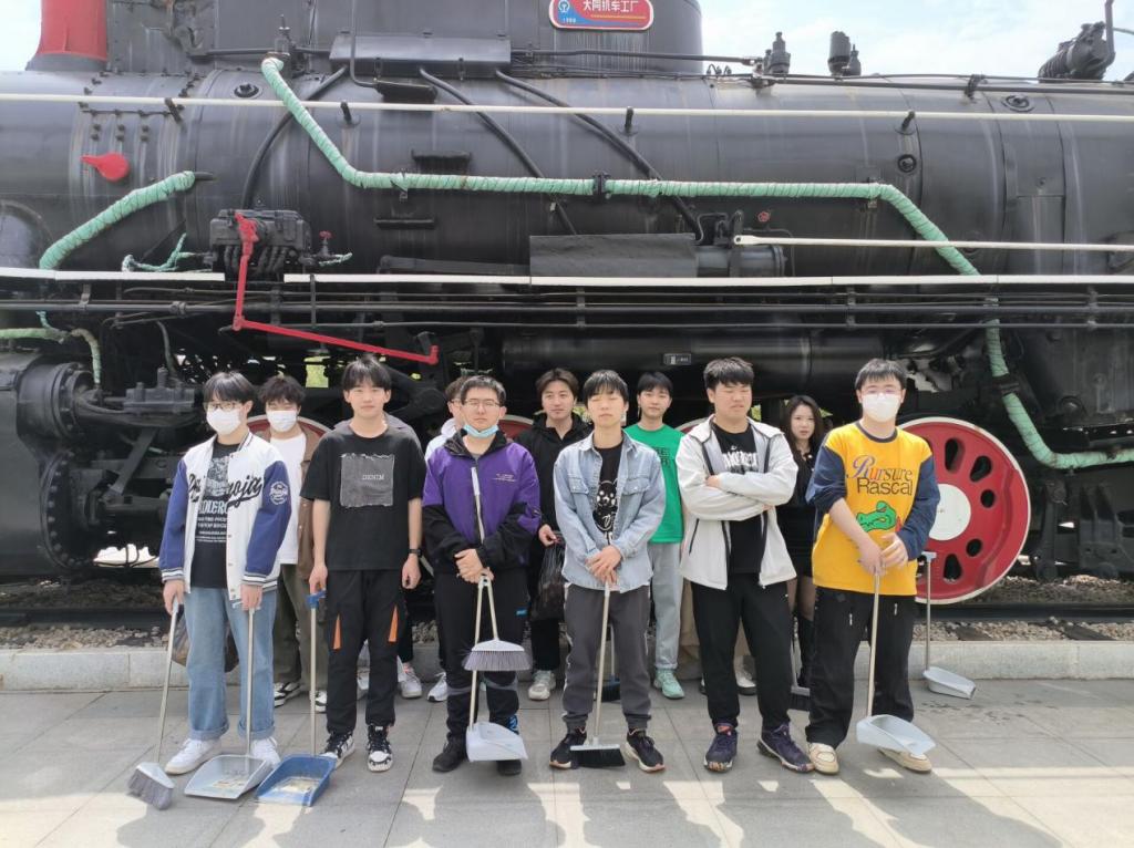 此次活动开始前,同学们各自带好清洁工具,在指定地点提前集合,志愿服务委员吕程向同学们简单讲解了活动注意事项,并分配小组以及清洁区域。在打扫过程中,各个小组紧密配合,积极迅速地将绿化带内的饮料瓶等垃圾拾起,并集中收集处理。活动最后,全体参与同学在火车头前拍照留念。