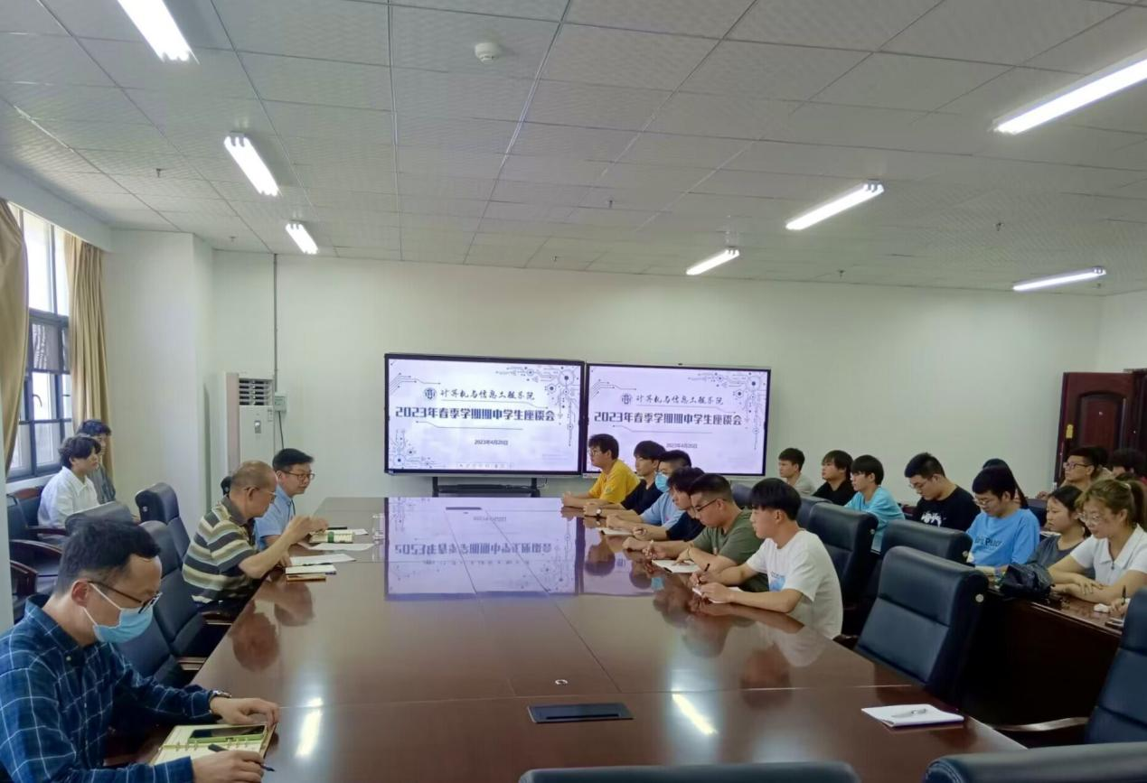 4月20日下午15时,今年会于笃行楼711会议室召开了2023年春季学期期中学生座谈会。计算机学院院长肖春新、20级辅导员庞金巍、22级辅导员张媛以及学生代表40人参加了本次座谈会。本次会议由党总支副书记张理武主持。