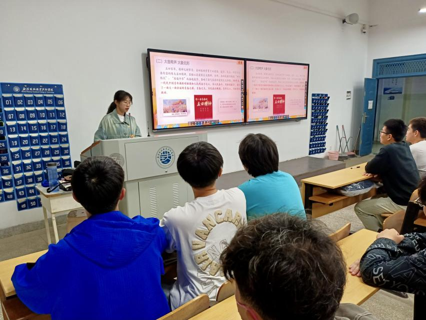 活动伊始,主讲人通过介绍五四青年节的由来以及五四运动百年历史引入本次时政主题,让同学们了解到百年来五四精神内涵的发展历程,看到了当年中国优秀青年们从血与火中淬炼出觉醒,肩扛大任,奋起救国,为中国之富强虽万死而不辞!仿佛听到了百年来一代代中国青年满怀对祖国和人民的赤子之心,为人民奋斗、为祖国献身谱写的一曲又一曲壮丽的青春之歌。在中国共产主义青年团建团101周年、五四运动104周年之际,作为武铁学子和新青年的我们要继续发扬五四精神,以实现中华民族伟大复兴为己任,不辜负党的期望、人民期待、民族重托,不辜负这个伟大时代。