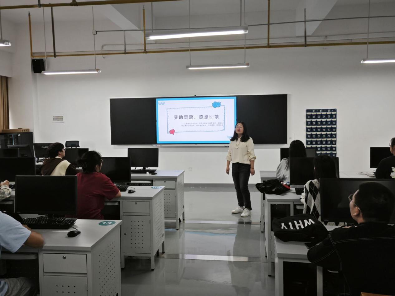 班会伊始,主讲人重点介绍了学院关于学生资助的内容,讲解了每项内容的实施制度和评选办法。接着主讲人以分享优秀受助学生的事例为引索,进行了“诚实受助,感恩回馈”思想主题教育,引导同学们树立正确的感恩意识。班会最后,主讲人组织学生进行讨论交流,并耐心地解答了每位学生有关资助政策的问题,使同学们更好的理解建立资助政策体系的意义,让同学们感受到了国家资助的温暖与关怀。