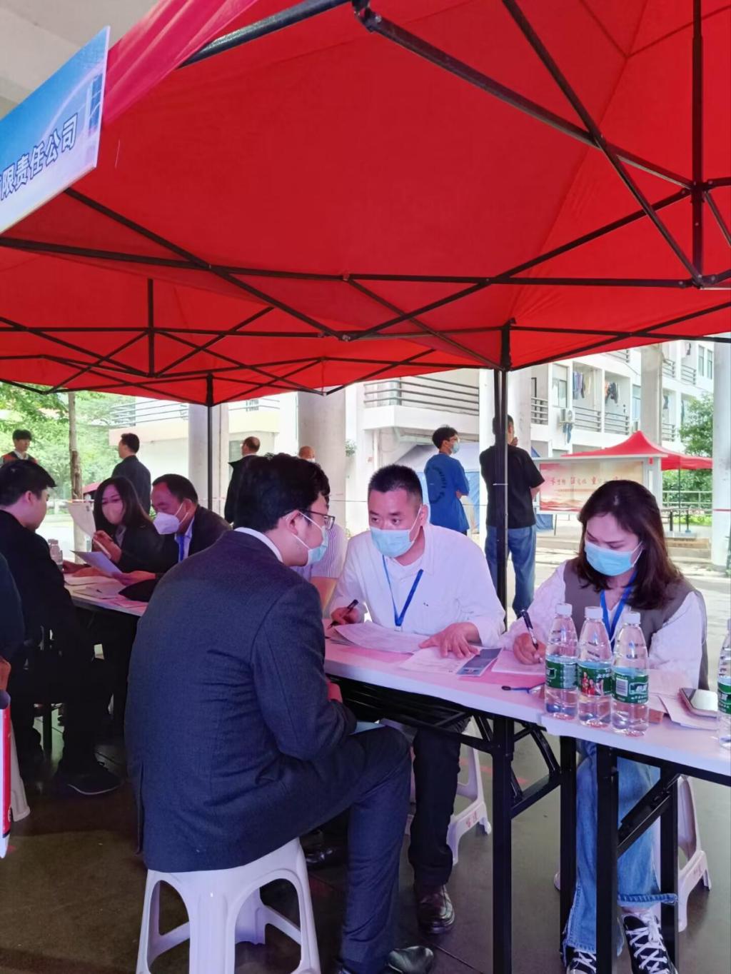 在招聘会现场,气氛热烈、秩序井然。各招聘单位展位前,毕业生手持简历与用人单位面对面交流咨询,用人单位耐心介绍岗位需求、技能要求及薪酬待遇等情况。部分达成就业意向的同学与企业在现场就签订了初步就业协议。同学们也热情、积极关注各用人单位招聘信息,详细了解就业形势和需求,为自身职业生涯提前做好规划。现场面试环节,同学们针对专业特点及自身定位进行了岗位的选择。