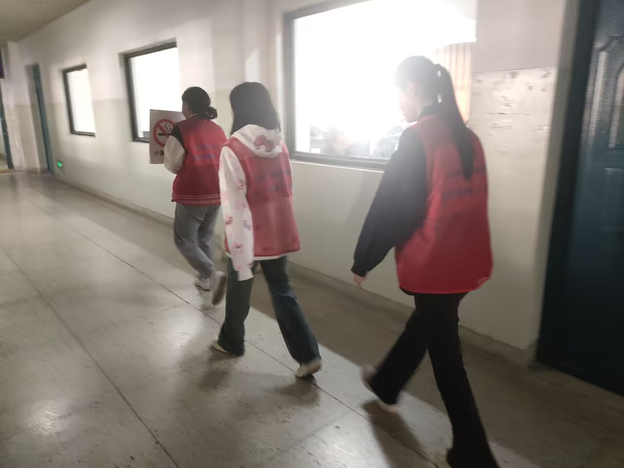 活动开始,志愿者提前在集合地点集合,由负责人点到,讲解禁烟活动注意事项,拍照查考勤以及分发马甲。活动期间,志愿者们积极有序开展禁烟活动,专心致志,充满热情地展开巡逻。巡逻期间对厕所以及楼梯进行重点检查,最后在志愿者的积极巡逻下,本次活动取得圆满成功。