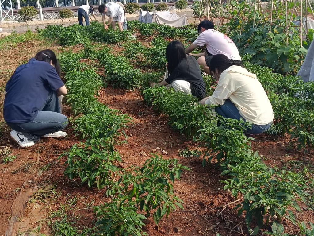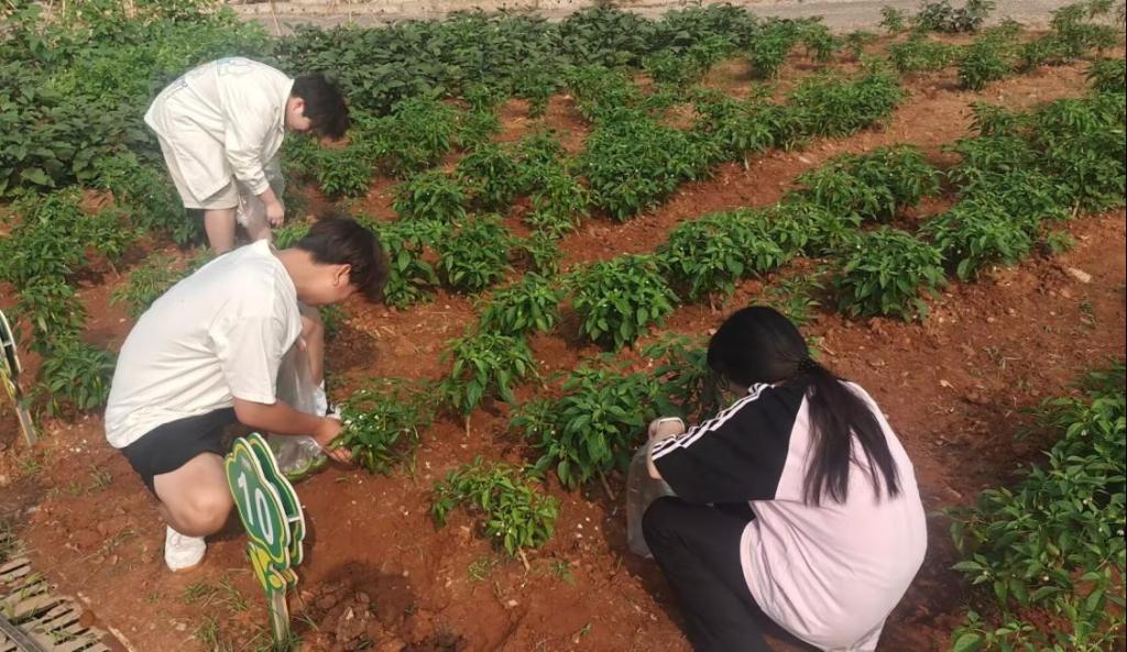 在活动筹备前期,同学们便展现出极高的参与热情与责任担当。他们定期前往 “开心农场”,严格依照蔬菜种植标准,一丝不苟地完成松土、施肥、浇水、除草等养护工作。在老师们的专业指导下,蔬菜在充足的阳光雨露滋养下茁壮成长,田间一片生机盎然。