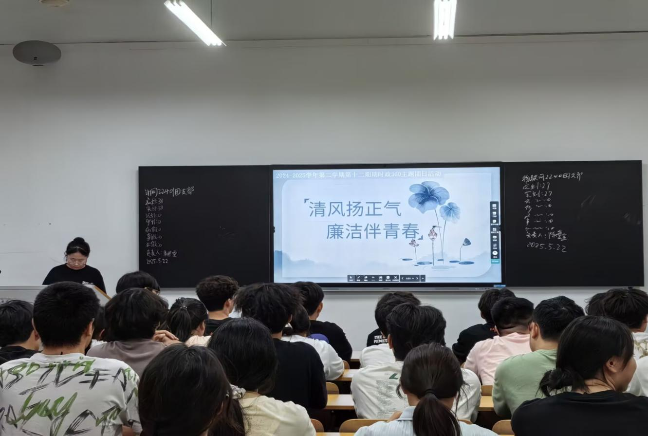 为了深入推进新时代廉洁文化建设,引导青年学子厚植崇廉尚洁价值理念,5月22日19时,今年会于明德楼顺利开展“清风扬正气、廉洁伴青春”主题时政360活动,此次活动由计算机学院团委书记、23级辅导员王梦婕老师指导,全体24级同学共同参与。