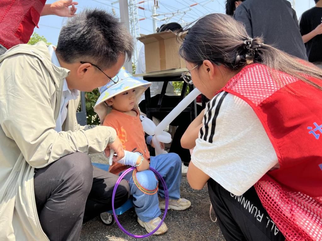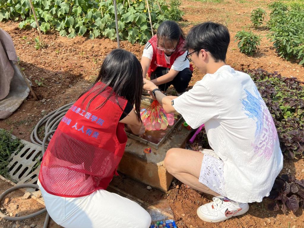 活动准备阶段,志愿者们有条不紊地搭建遮阳棚,细致地准备好剪刀、小锄头、手套等采摘工具,整齐地摆放好游戏物品,以热情和耐心静候小朋友和家长的到来。随着活动的正式开始,志愿者引导亲子家庭有序地进入学院责任田。活动现场,志愿者热情地为大家介绍田里种植的辣椒、土豆、茄子、苋菜等各类蔬菜,并邀请孩子们动手体验采摘的乐趣。此外,学院还准备了扔水球、DIY 铅笔盒和套圈等丰富多样的趣味活动。志愿者全程陪伴,积极引导小朋友参与其中,现场洋溢着欢乐的氛围活动过程中,志愿者们不仅营造了欢快的气氛,更时刻关注参与者的需求。当有小朋友突发呕吐时,志愿者迅速反应,第一时间将其带至阴凉处休息安抚,直至小朋友恢复状态,重新投入活动,充分彰显了志愿者的细心与担当。王丽老师全程的专业指导,也为活动各环节的有序推进提供了坚实保障。