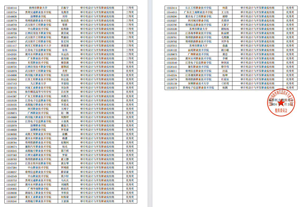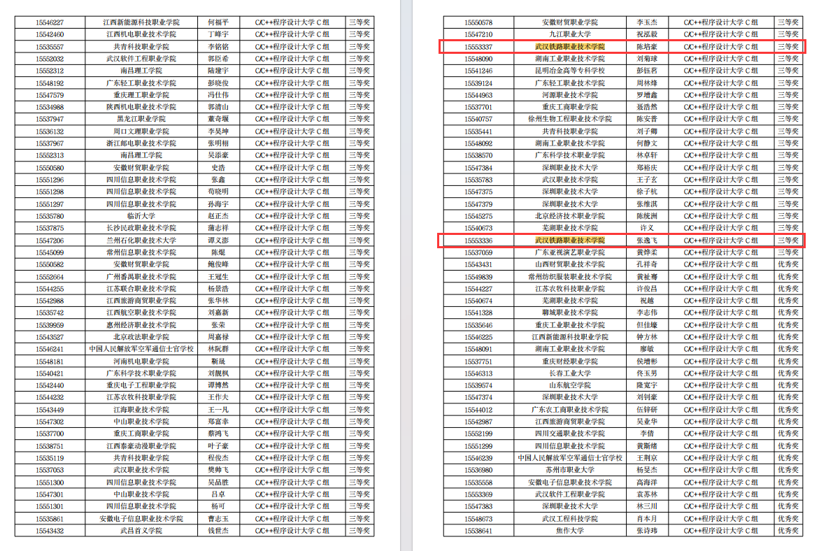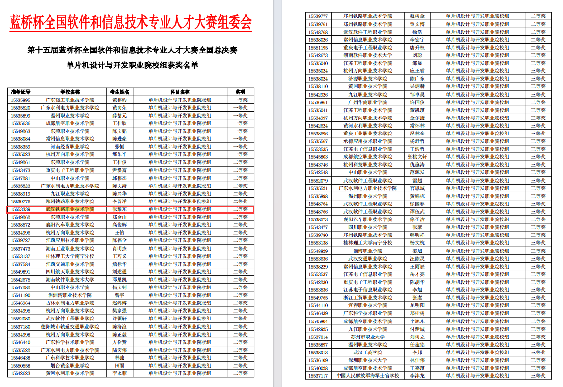 蒋周霖、廖振杰获得c/c++程序设计高职C组国赛二等奖、张耀东获得单片机设计与开发高职C组国赛二等奖,朱柏存、陈培豪、张逸飞获得c/c++程序设计高职C组国赛三等奖,均表现优异。