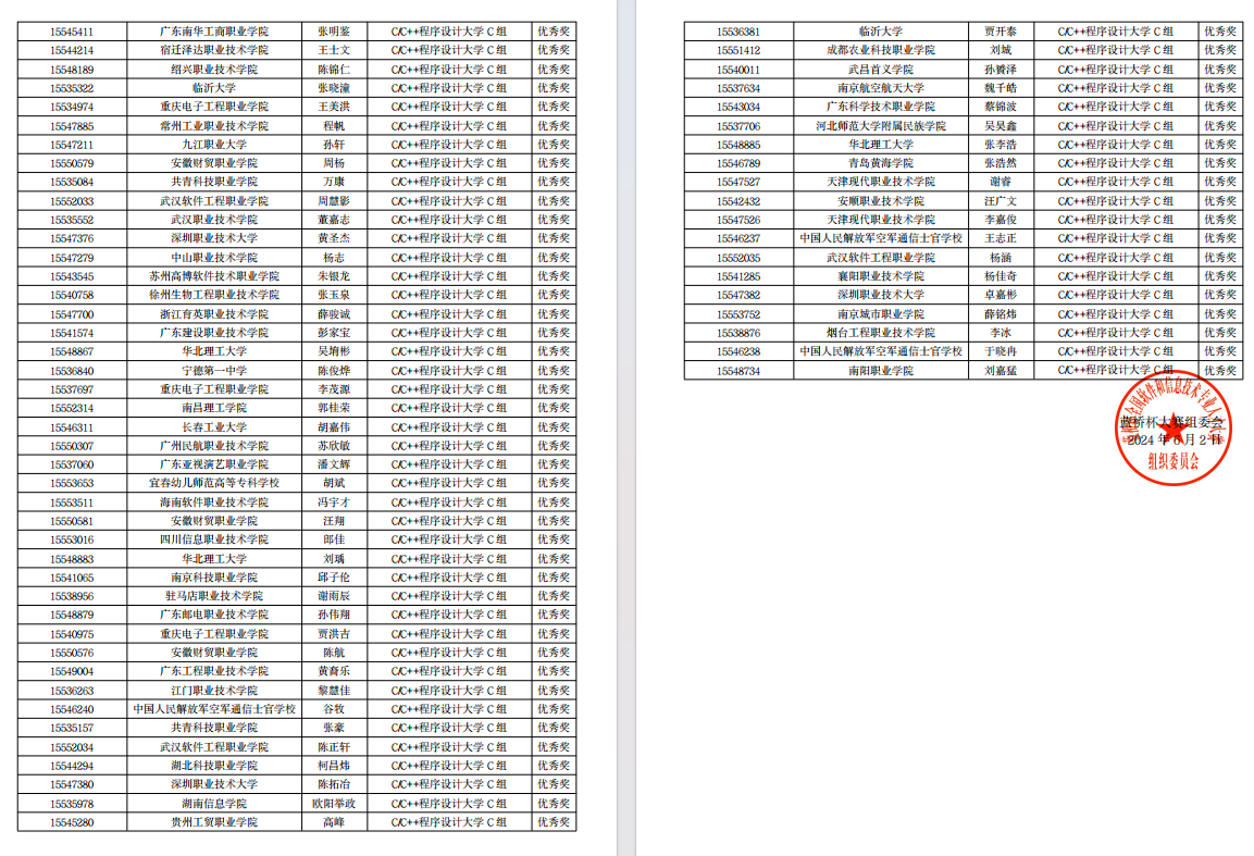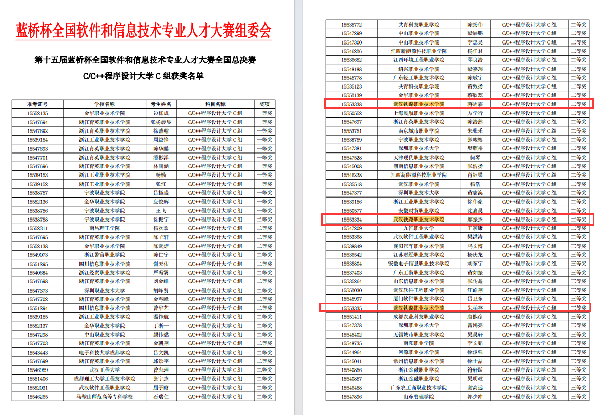 图2 “蓝桥杯” c/c++程序设计高职C组国赛二、三等奖