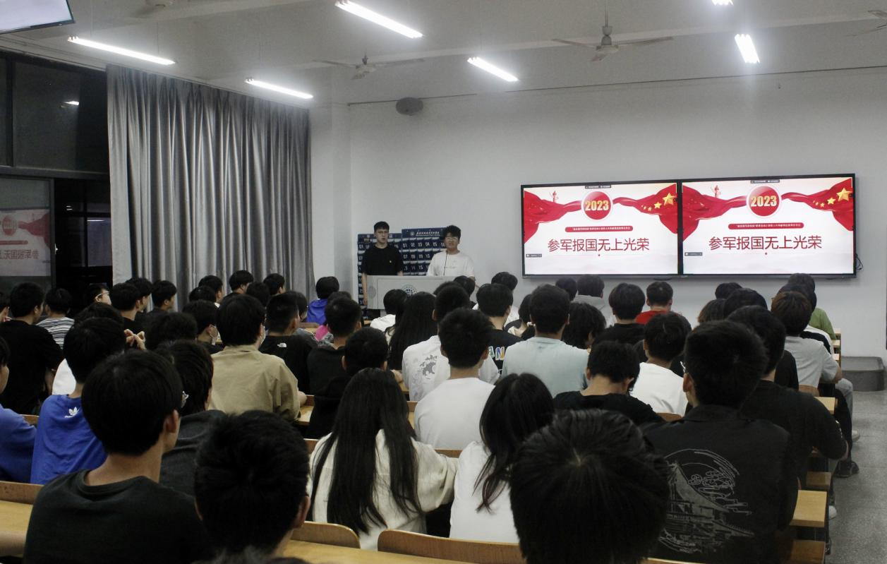 活动伊始,湖北征兵宣传片的让同学们真正理解了“依法服兵役,参军最光荣”的含义。紧接着,王鹤翔同学分享了自己秉承家风传承,立志从军经历,从“三代从军、家风传承、支援边防、捍卫国土”重现了自己和战友身上发生的故事。2020年6月中印边境线处印军公然挑衅我方,为捍卫我国国土,我方与印军展开了动心心魄的殊死搏斗。在这场硬仗中有陈祥榕等烈士英勇牺牲,多名军人深受重伤,只因他们的心中对我们的国家热爱的深沉。最另参会同学们吃惊及敬佩的是,本次活动的主讲人王鹤翔同学也身在其中。从军时,极寒、缺氧、强紫外线的照射,无一不在磨练他的耐力、韧劲。如今,退伍不褪色,满身伤病仍旧在,满腔热血永不灭,王鹤翔同学向同学们解读了征入伍基本条件和入伍流程,讲述了优选征集入伍、增发义务兵家庭优待金、国家补偿(减免)学费、代偿助学贷款等等大学生参军特别优惠政策,号召各位同学积极参军,报效国家。