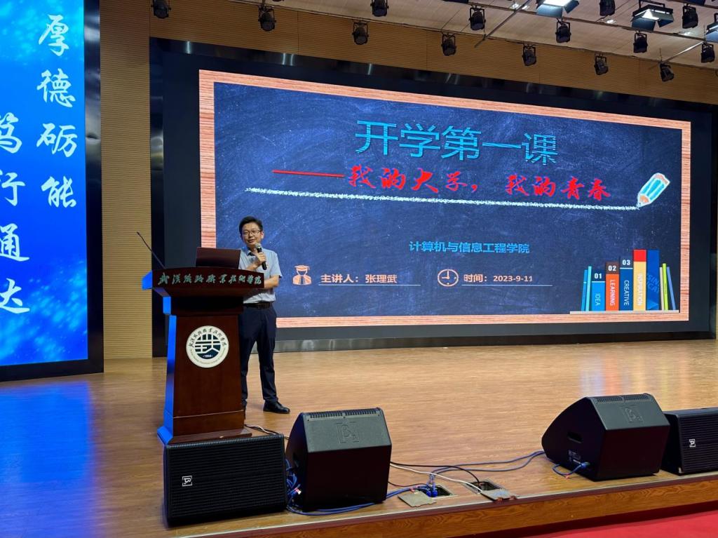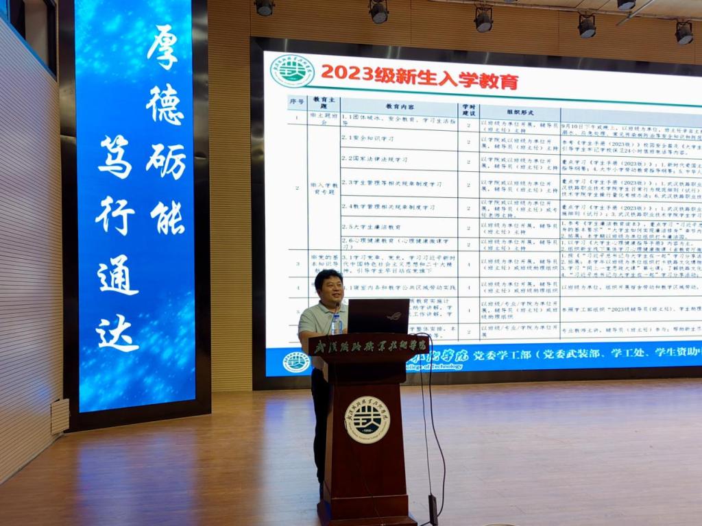 为进一步帮助新生更好地理解学校规章制度,学院学工办主任熊珂老师为新生解读最新版《学生手册》、学生日常事务管理条例、学生素质教育实施计划以及团员关系转接等相关文件。22级辅导员张媛老师讲解了贫困生认定、勤工助学岗位、学生奖助贷政策、学生保险知识,23级辅导员庞金巍老师对征兵相关政策进行宣讲。学生党支部书记王丽老师与新生一起学习党史、党章、党的基本知识、党的二十大精神,结合“习近平与大学生在一起”分享活动,开展心理健康教育,组织同学们集体观看省教育厅心理健康微视频。校党委学工部部长谢刚老师通过近年来学校开学季发生过的电信诈骗案例,告诫同学们要时刻防范网络诈骗,远离诈骗份子的圈套,树立防火防盗防诈骗的安全意识。计算机学院还邀请到湖北华育智远信息科技有限公司执行董事兼总经理姜明哲、计算机学院应用软件专业群教研室以及电子信息专业群教研室老师对23级新生进行专业介绍,并针对不同专业新生开展学习规划和就业指导。