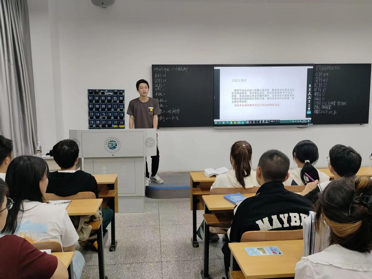 为进一步推进2023级新生对就业信息的深入了解,计算机学院团委在学院就业专员庞金巍老师的指导下,于10月16日晚,在明德楼教室开展就业主题班会活动,2023级全体新生参加本次活动。