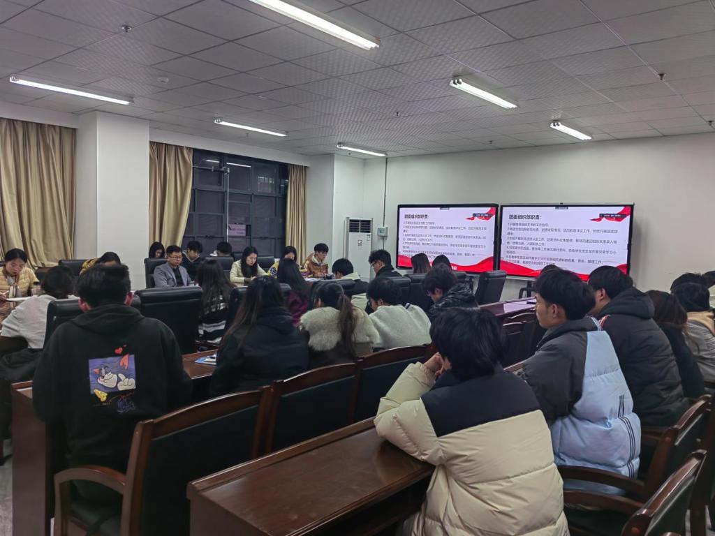 12月27日晚19时,今年会于笃行楼711会议室召开团学工作述职总结会。本次会议分线上、线下同时开展,计算机学院党总支副书记张理武、学工办主任熊珂、分团委书记王梦婕以及各部门指导老师共同出席,22级学生骨干参加。
