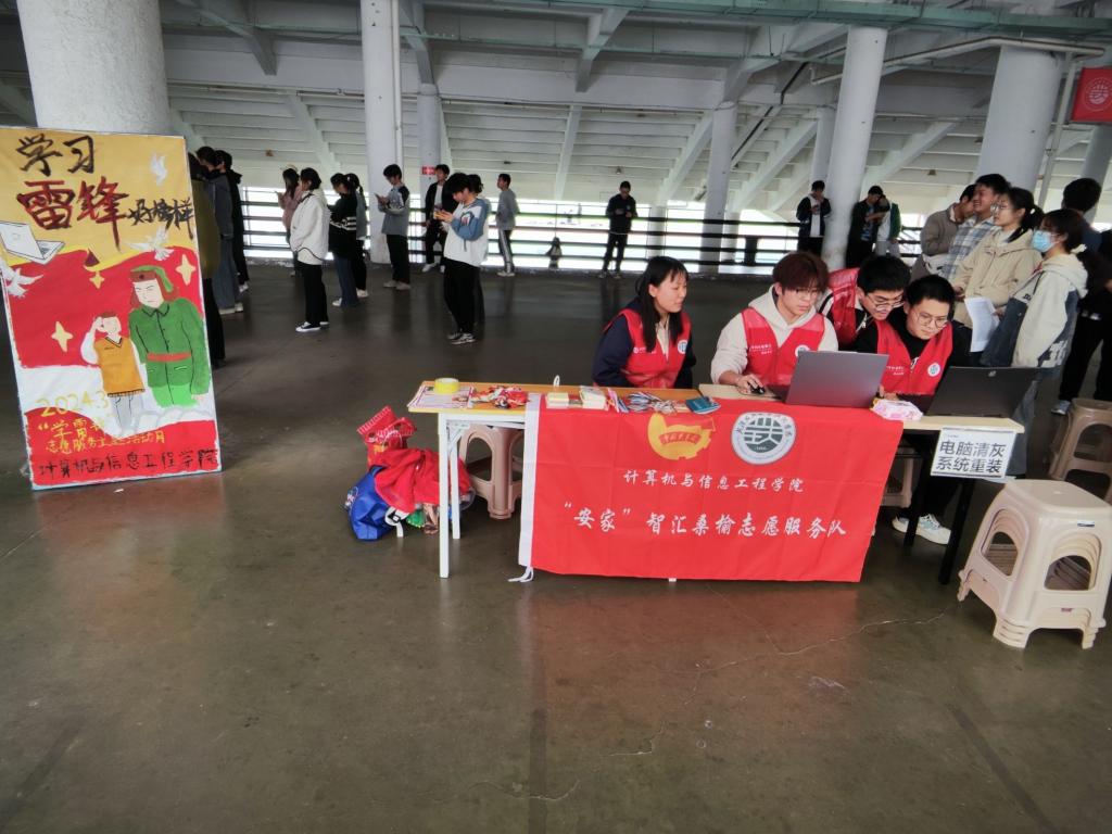 为进一步弘扬雷锋精神,营造人人学雷锋的良好氛围,3月14日下午,计算机学院“安家”智汇桑榆志愿服务队在模拟站台开展了“学雷锋”公益集市特色志愿服务活动。