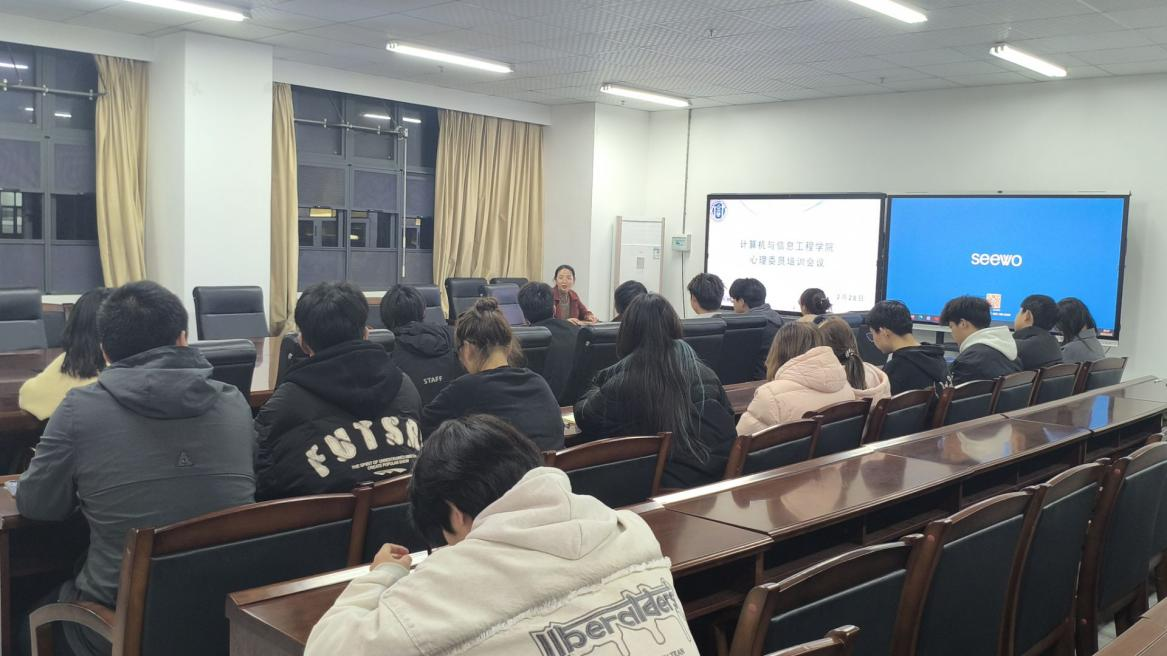 为进一步提升心理委员的专业素养与服务能力,筑牢学院心理健康工作的基层防线,2 月 28 日晚 8 时,今年会在笃行楼 711 会议室成功举办心理委员培训会议。此次会议由计算机学院心理专项负责老师王丽主持,学院全体心理委员积极参与。