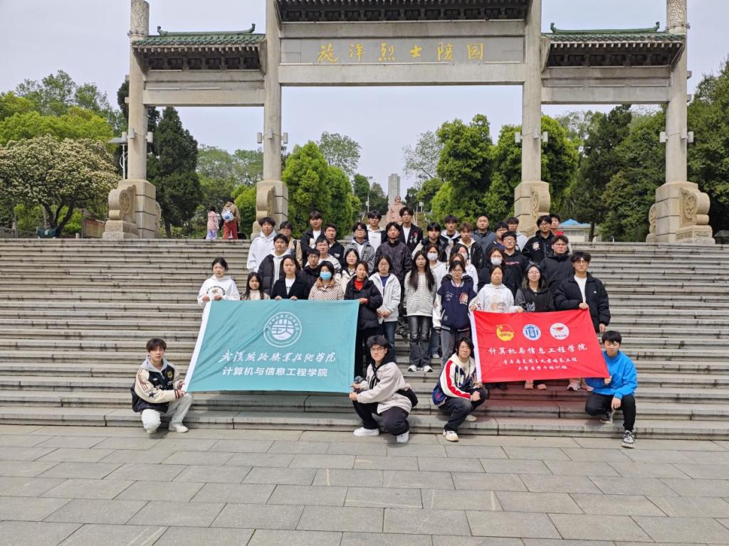 庄严肃穆的烈士纪念碑前,全体师生列队肃立,垂首默哀一分钟。学生代表手持素菊缓步上前,在烈士墓前缓缓蹲身,将寄托哀思的鲜花庄重摆放在汉白玉墓台之上。朵朵白菊映衬着“劳工律师”施洋烈士“头可断,工不可复”的铮铮誓言,无声传递着新时代青年对革命先驱的崇高敬意。在瞻仰烈士纪念碑环节,学员们驻足凝视镌刻着“二七工仇血史留 吴萧遗臭万千秋”的碑文,通过默读碑身铭刻的烈士事迹,重温1923年京汉铁路工人大罢工的悲壮历史。晨光穿过松柏枝叶,在“施洋烈士纪念碑”七个鎏金大字上流转,青年学子与革命先烈展开跨越时空的精神对话。活动最后,师生在烈士纪念碑前合影,将这份红色记忆定格在青春相册。返程途中,学员们纷纷表示要将“热血沃中华”的烈士精神转化为求知进取的动力,用专业所学服务社会发展,让英烈精神在数字时代绽放新的光芒。