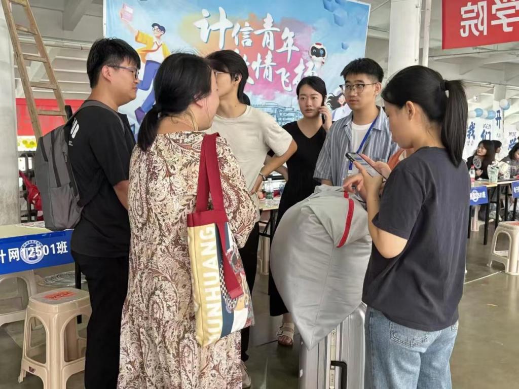 除基础保障外,筹备团队还在服务细节上巧思创新:采访新同学,供新生报到后写下大学目标、定格青春期许,为校园生活留下专属记忆;安排23级、24级学生轮流值守,针对性解答新生关于宿舍位置、行李搬运等高频问题,切实解决新生入校后的实际困惑。从物资清点筹备、报到流程优化,到现场环境布置、服务细节打磨,每一处工作都凝聚着计信学院教职工与学生志愿者的用心。