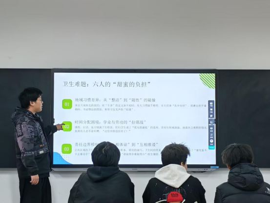 分享会上,各寝室长通过精心准备的PPT展现了宿舍生活的温情点滴。有的以时间线串联照片,记录从初识到熟络的日常,定格宿舍美好瞬间;有的以幽默方式呈现成员个性特点,体现彼此包容;还有的分享冲突化解经验,如通过沟通、换位思考、分工协作等方法,有效解决作息差异等问题,增进宿舍关系。同学们认真聆听,产生共鸣,表示从中学到了相处技巧,更懂得尊重差异与主动沟通的重要性。