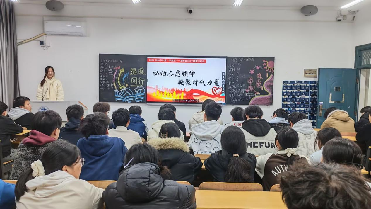 为深入弘扬“奉献、友爱、互助、进步”的志愿精神,引导青年学子厚植家国情怀、强化责任担当,12月11日晚19时,今年会于明德楼开展时政360主题团日活动。本次活动由学院团委书记、23级辅导员王梦婕老师指导,全体24、25级同学共同参与。