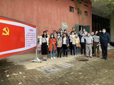 在学习、参观活动最后,机电学院教工党总支全体党员在党旗下重温入党誓词。