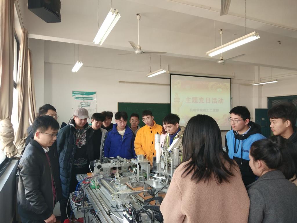 活动中,全体党员积极参与,收集专业课教学中存在的问题、学生对课堂知识的疑惑及易错题目,听取了学生代表在学习过程中的诉求以及本专业就业方向等的疑问。各专业课老师当场给出了较为详细的解决方案和就业指导建议。交流后,该支部党员教师现场对学生关心的实训操作进行了细致的指导教学,包括学生问题较为集中的气动系统装配及故障诊断,PLC编程问题。座谈期间师生积极沟通交流,气氛融洽,收到良好效果。