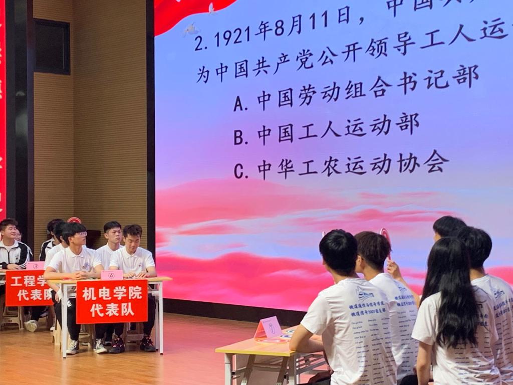 5月27日下午,由校团委主办,工程学院和机电学院承办的“2021年党史知识竞赛”决赛在通达厅隆重举行,由初赛胜出的32名学生代表各自学院参加最后角逐。学工部部长谢刚、校团委副书记彭俏、教师及各二级学院学生代表共同参与本次活动。