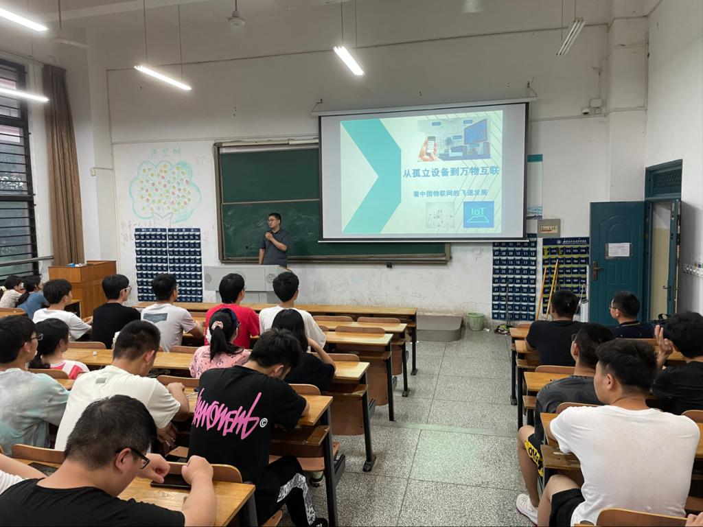 6月15日晚,以“从孤立设备到万物互联,看物联网的飞速发展”为主题的“速度中国”特殊思政课系列讲座在2栋107教室顺利举办。机械与电子学院吴杰老师主讲,机电学院党总支副书记张理武、副院长张辉以及20级学生代表参加,讲座由公共课部刘珂老师主持。