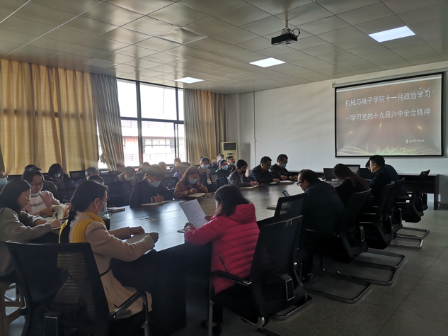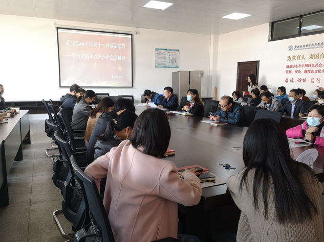 11月18日,机械与电子学院在崇德楼702会议室集中开展十九届六中全会精神系列专题学习,学院全体教职工参加。院长王峰带领全体教职工解读党的十九届六中全会内容 ,党总支副书记张理武主持会议。