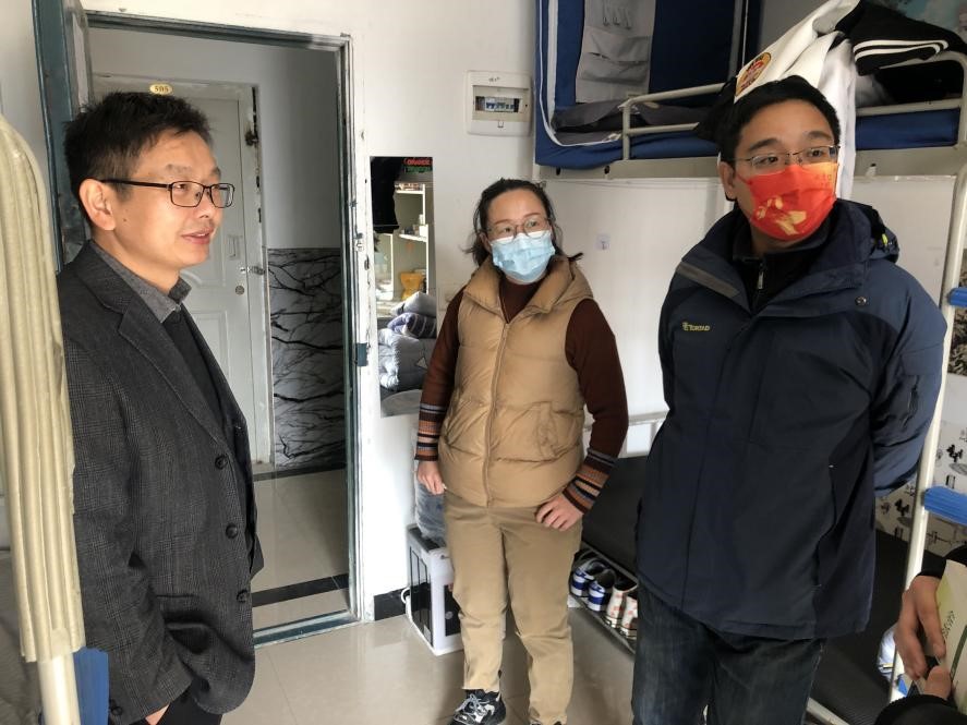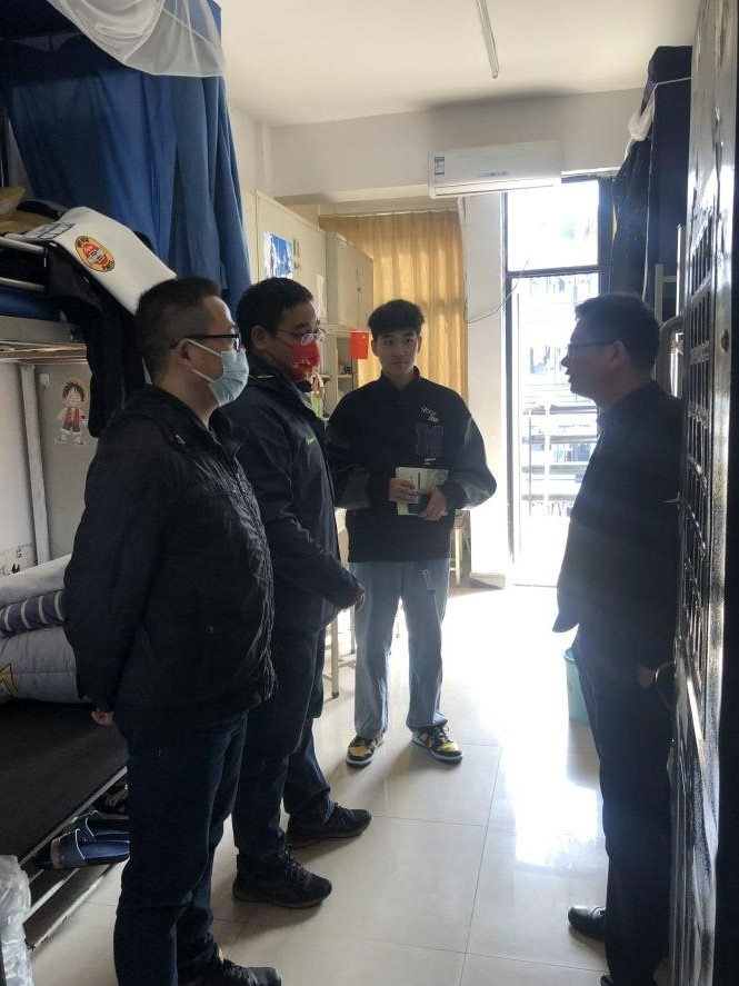 11月26日中午,机械与电子学院党总支副书记张理武陪同网信中心主任侯晓璐、党员干部蔡浩、姚娟深入联系的软件2111班学生宿舍,落实学校“三联三帮”要求。