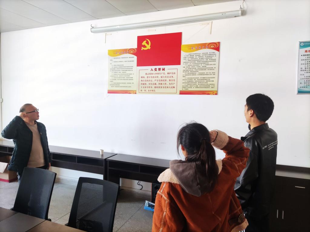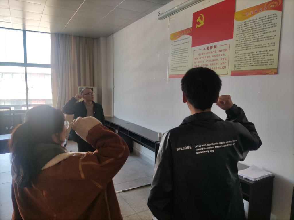 2021年4月20日,机电学院学生支部在3-702会议室开展预备党员宣誓活动,本次活动由学生支部书记徐旻杰老师主持,学生支部部分党员和新发展的两名预备党员参加。