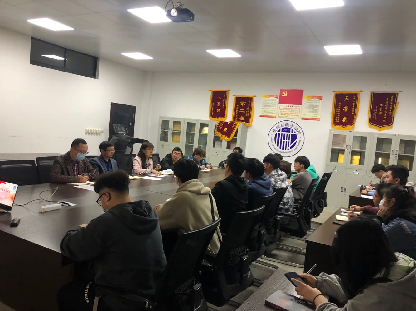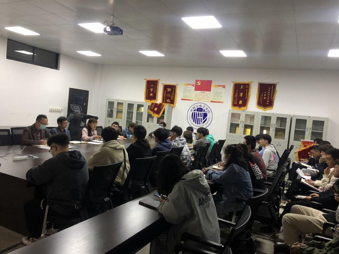 4月6日晚,机械与电子学院在崇德楼702会议室召开20级学生就业动员会,机电学院副院长张辉、党总支副书记张理武、20级辅导员庞金巍以及20级各班班长、团支书参与会议。
