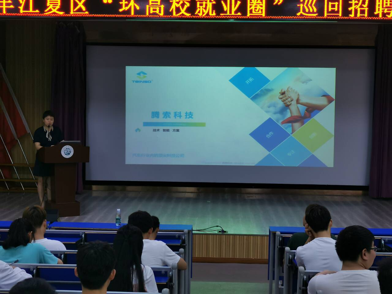 活动分为五个批次进行,分别由中水电四局武汉轨道交通工程有限公司人力资源部主任郭宇帆、湖北健鼎电子的招聘主管张帆、曼德汽车零部件有限公司的人事专员肖旭、武汉腾索科技有限公司的人事经理汪春霞、浙东新能源汽车科技有限公司的招聘主管谢书良主持召开。他们通过播放宣传片介绍自己公司的企业文化、以及薪资福利待遇等同学们关注的问题。在宣讲过程中,各企业负责人耐心的为同学们答疑解惑并给出了自己的建议。会后,各公司给出了自己的企业微信以便更好地解决同学们的问题。