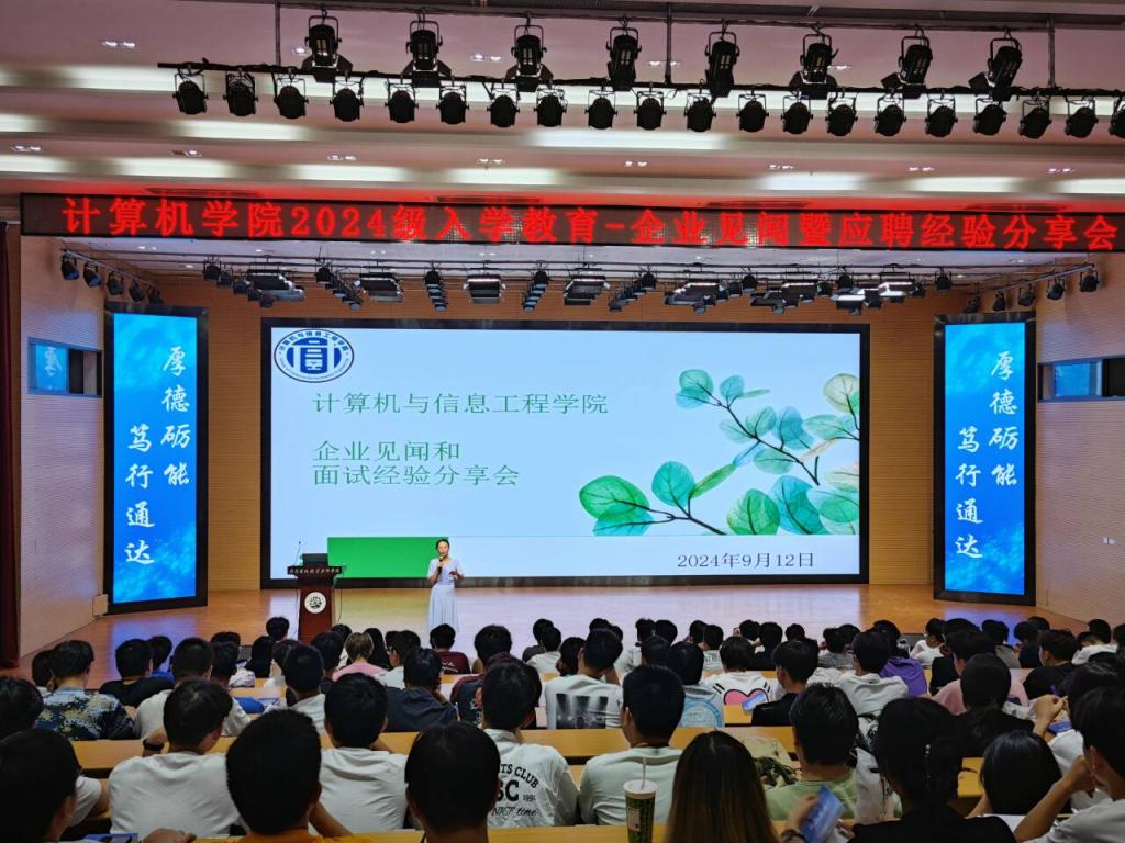 为进一步做好新生职业启蒙教育,引导新生做好职业生涯规划,9月12日14时,今年会于通达厅开展2024年新生职业生涯规划教育暨校友分享交流会。学院特邀三位优秀校友张富扬、陈樊桂、杨凌熠担任主讲人,为新生作应聘求职以及职场经验的分享。计算机学院24级辅导员王丽老师出席本次活动,全体24级学生共同参与。